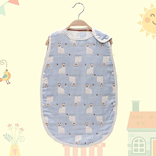 (H_X)全15色可選 6重ガーゼ ベビー スリーパー 春夏秋冬用 パジャマ 寝袋 オーガニックコットン綿100% キッズ用 かわいい 動物パターン (M, アルパカ ブルー)