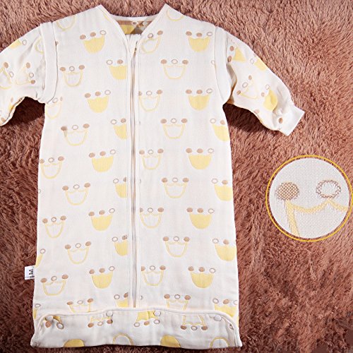 (H_X)2色可選 6重ガーゼ おくるみ スリーパー ベビー 秋冬用 長袖 パジャマ 寝袋 オーガニックコットン綿100% キッズ用 かわいい 動物パターン (S, クラウン イエロー)