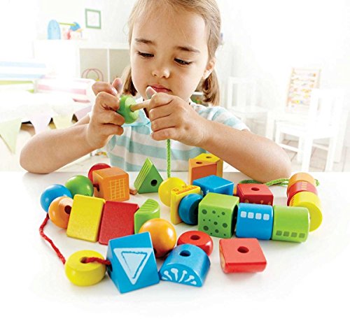 In String-Along Shapes from Hape, a simple string turns blocks into a train, a caterpillar, a tower, or. This lacing toy is an up to date version of a classic toy that has delighted generations of children. Develops fine and gross motor skills as well as stimulating imagination. Durable child safe paint finish and solid wood construction are hallmarks of Hape toys. Hape's toys stimulate children through every stage of development and help nurture and develop their natural abilities. All Hape products sold in North America meet or exceed all applicable safety standards. In String-Along Shapes from Hape, a simple string turns blocks into a train, a caterpillar, a tower, or. This lacing toy is an up to date version of a classic toy that has delighted generations of children. Develops fine and gross motor skills as well as stimulating imagination. Durable child safe paint finish and solid wood construction are hallmarks of Hape toys. Hape's toys stimulate children through every stage of development and help nurture and develop their natural abilities. All Hape products sold in North America meet or exceed all applicable safety standards.