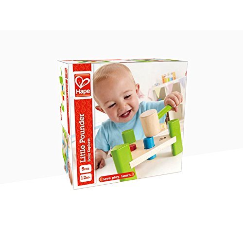 Tap! Tap! Tap! Hammer pegs through the holes---then flip the bench over and do it again. And again. Fine Motor Skills: Promotes dexterity, hand/eye coordination's, and manipulations. Problem Solving: Introduces logic, matching, spatial relationships, critical thinking, and an understanding of cause and effect. Wood and water-based paint. Tap. Tap. Tap. Hammer pegs in Little Pounder by Hape through the holes---then flip the bench over and do it again -- and again. The Triangle-shaped bench is light weight and easy for small hands to move. Very stable, easy to use classic toy - great fun. Durable child safe paint finish and solid wood construction are hallmarks of Hape toys. Hape's toys stimulate children through every stage of development and help nurture and develop their natural abilities. All Hape products sold in North America meet or exceed all applicable safety standards.