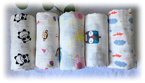 おくるみ ガーゼ ベビーブランケット コットン100% 赤ちゃん毛布 バスタオル (120cm×120cm) (5枚入り(動物))