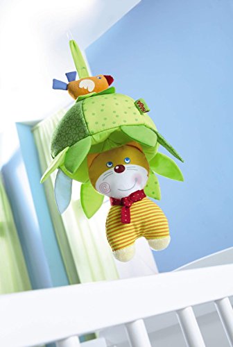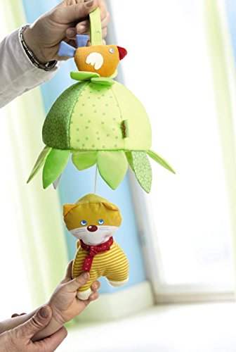 HABA's Friendly music box that can be hung or fixed to a crib. Makes a great baby gift! Gently look down on the little ones while playing a sweet little tune - plays rock-a-bye baby.