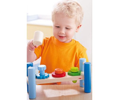 ルトとナットで色合わせ。 ベンチの穴にあわせてナットを置き、ハンマーを使ってボルトで固定します。 工具を使う遊びのおもしろさ。 幾何学的な様々の形に馴染み、色合わせの遊びを楽しみましょう。 企画・デザインはもちろん、どんな木製部材もすべて自社で作るまさしくドイツのマイスター精神が息づいているハバ社。 子どもと長く付き合える「良い品質」を追求し、おもちゃに合った最良の素材(原料)を使い、そして何よりも安心して与えられる安全性を備えた製品を作り続けています。 欧州連合の法律に基づいた「製造物製造基準」に適合していることを示す「CEマーク」合格認定を受けたおもちゃです。