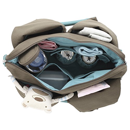 Lassig Glam Global Style Diaper Shoulder Bag Handbag Tote-Bag includes Matching Insulated Bottle Holder, wipeable Changing Mat, Stroller Hooks,Light Grey by Lassig