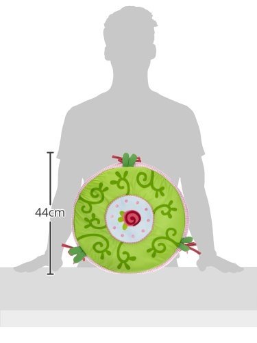 Charming addition to a girl's playroom. Cushion is made of velours and cotton, embroidered. Back: cotton/polyester, cover with zipper, removable, polyester ticking.