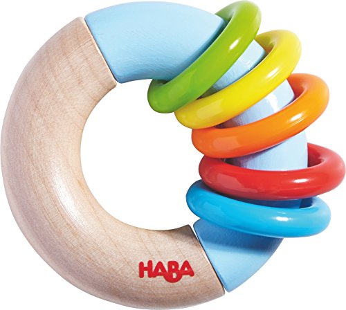 Habaリング周り木製Clutching Toy , Rattle and Teether with Five Rings移動(ドイツ製)