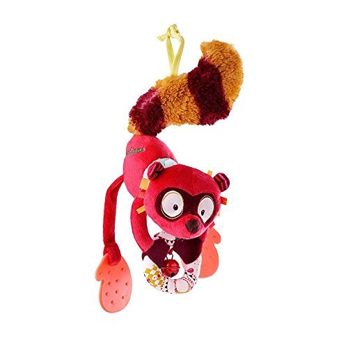 George the friendly racoon is ready for an adventure in play! He has so many entertaining elements, the fun is endless. Grab his furry tail, bat at his jingle bell and teethe on his textured paws. Whoa! Do his whiskers tickle? Play with him on the floor or use his ties to suspend him from a crib or carseat. For ages 0 +
