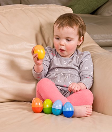 Shake things up with our Shakin Eggs. Develop your child's musical abilities early with these brightly colored eggs that all make different noises. Most are shakin' but one of the five is twistin. Can you figure out which one it is?