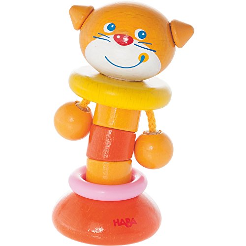 Haba Clutching Toy Clatter Cat Wooden Rattle & Teether (ドイツ製)