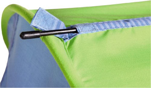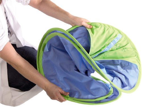 折りたたみ式で軽量なので、旅先や帰省先へ簡単に持って行くことができます。はじめての場所でも、いつもと同じ空間を作ってあげると、赤ちゃんもお母さんも安心ですね。妖精のがらがらと、ふわふわのマットは、面ファスナー式で取り外すことができ、手洗い可能です。天井には、おもちゃの取付用に、面ファスナーが3ヶ所あります。縁と天井に支柱が入っているので、安定感があります。
