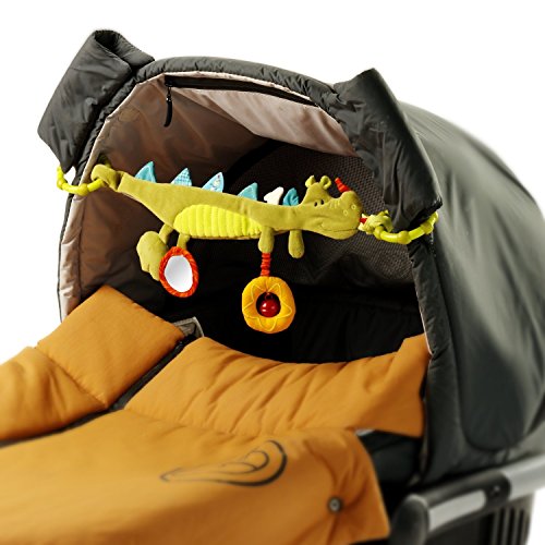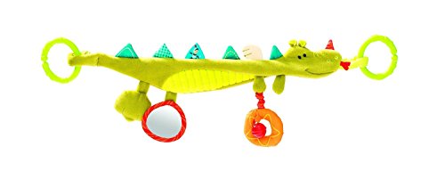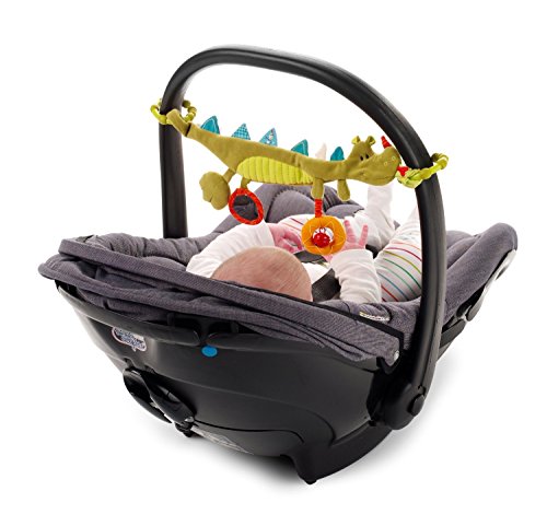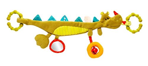 Bring walter the friendly dragon along with you when you go for a walk. Walter hooks conveniently onto the handle of car seats, strollers and cribs and keeps your baby happy and engaged with a fun mirror, bell, and rustling noise feature.