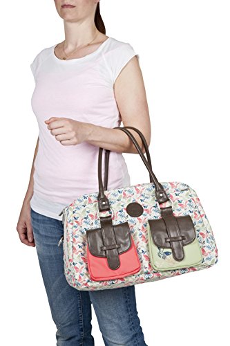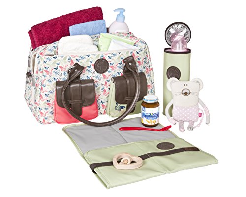Lassig Vintage Metro Style Diaper Bag Shoulder Bag Handbag Tote-Bag includes Matching Insulated Bottle Holder, wipeable Changing Mat, Stroller Hooks and lots of compartments for Changing your baby, Butterfly Spring