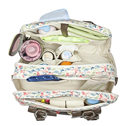 Made of lightweight yet durable polyester fabric and designed to last long after the little ones are out of diapers;Styled with faux leather handles and front pocket flaps, this handbag-style diaper bag is sure to turn heads;Two main zipper pockets that open up to reveal a multitude of well-organized pockets and compartments for Mom and baby's things;Insulated removable bottle holder to keep liquids hot or cold, a water repellent wet zipper pocket for damp items, a removable compartment with various pockets - ideal for baby food jars or lotions;All materials used to manufacture Lassig bags are free of PVC, AZO, Phthalates, Nickel and Cadmium