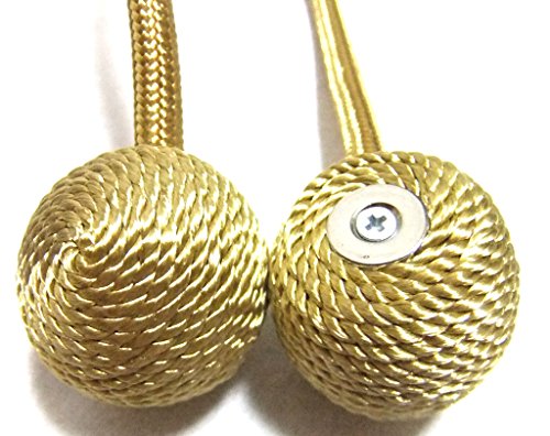 Hachigo ( ハチゴウ ) ボール 型 マグネット カーテン タッセル 2本 組 房掛け 留め 飾り アクセサリー (03.ゴールド)