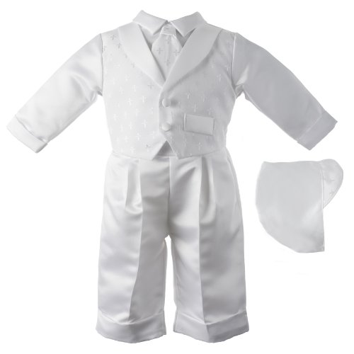 Lauren Madison baby boy洗礼式洗礼幼児ベストセットwithサテンパンツ カラー: ホワイト