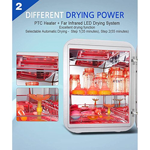 デュアルUVランプ-99.9%滅菌、乾燥100%、より大きな保管スペース-12eaボトルおよびPTCヒーター+遠赤外線LED乾燥システム。