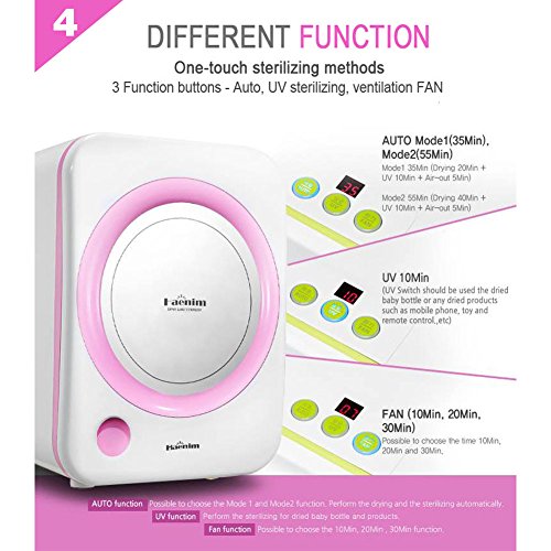 - 異なる機能 - ワンタッチ殺菌方法、3つの機能ボタン - 自動、紫外線滅菌、換気扇。