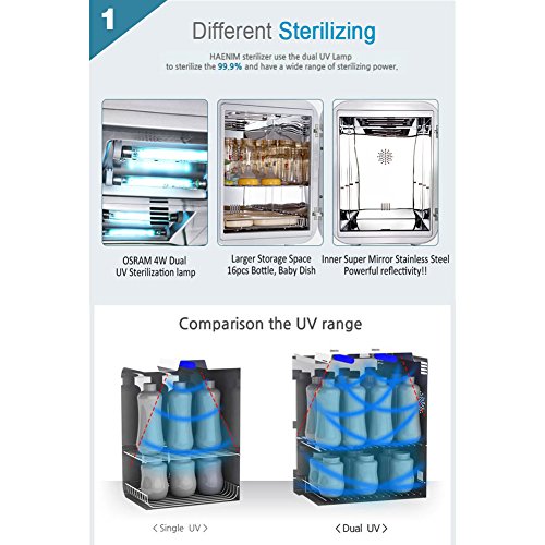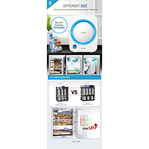 - 異なる滅菌OSRAM 4W二重UV滅菌ランプ、大容量収納スペース16本のボトル、赤ちゃん用皿、内側のスーパーミラーステンレス鋼の強力な反射率。
