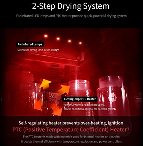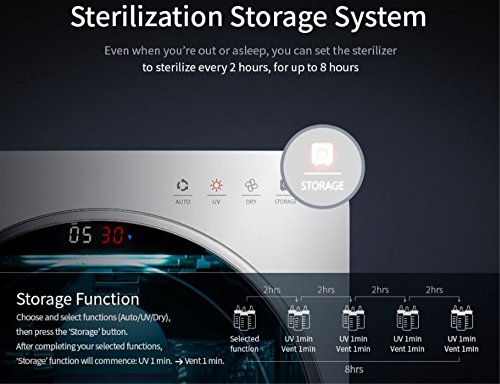 Bottle disinfector / disinfection method: 16 UV / bottles / power consumption: 80W / dual UV sterilization lamp / front super mirror / temperature sensor / Size (WxDxH): 29.5x37.5x42.5cm