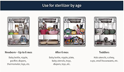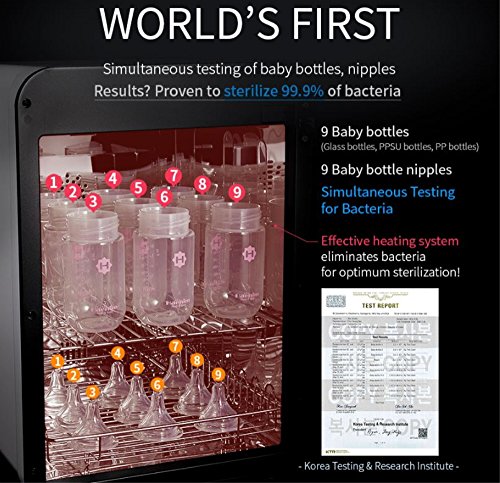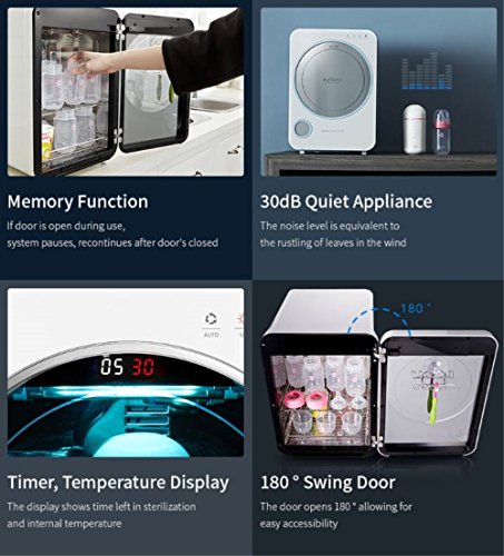 Bottle disinfector / disinfection method: 16 UV / bottles / power consumption: 80W / dual UV sterilization lamp / front super mirror / temperature sensor / Size (WxDxH): 29.5x37.5x42.5cm / Color: Gray