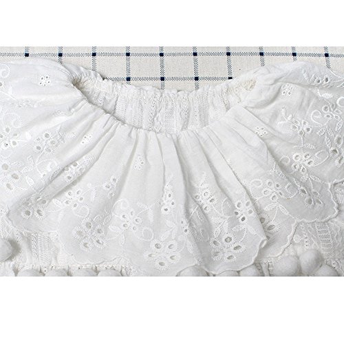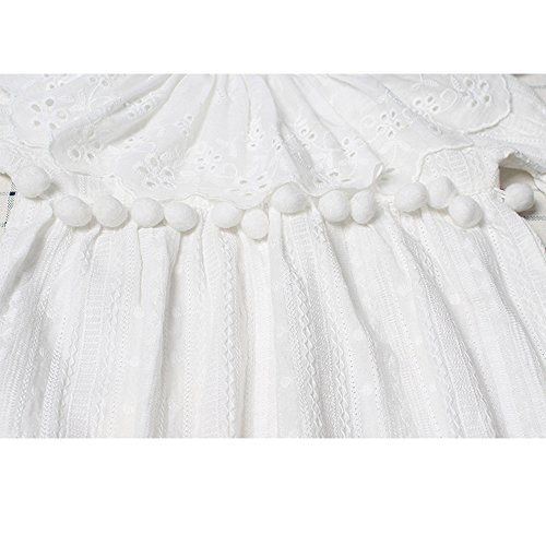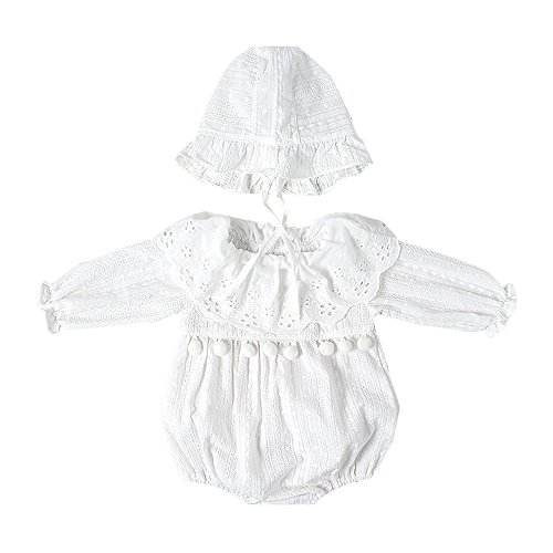 Haggai可愛い無地ベビー子供ドレス半袖女の子刺繍キッズレース赤ちゃん新生児ガールズワンピース夏秋+ホワイト帽子 (73cm, 長袖)