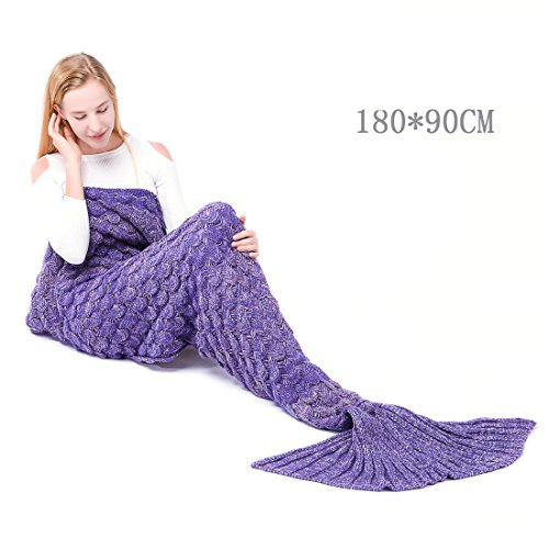 マーメイドテールブランケット、Kysonマーメイドかぎ針編み子供大人用ブランケット、すべてのシーズンSleepingバッグハロウィーン感謝祭クリスマスギフト Adult Scale パープル MRYS006-PURPLE