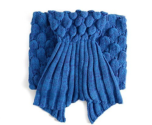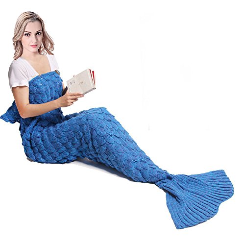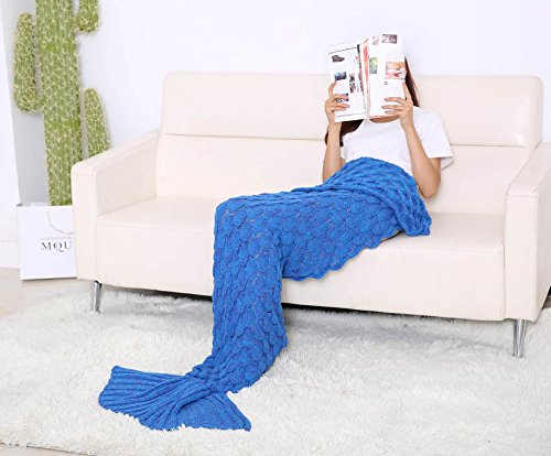 マーメイドテールブランケット、Kysonマーメイドかぎ針編み子供大人用ブランケット、すべてのシーズンSleepingバッグハロウィーン感謝祭クリスマスギフト Adult Scale ブルー MRYL001