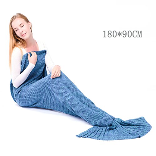 マーメイドテールブランケット、Kysonマーメイドかぎ針編み子供大人用ブランケット、すべてのシーズンSleepingバッグハロウィーン感謝祭クリスマスギフト Adult ブルー MRYP00A-Blue