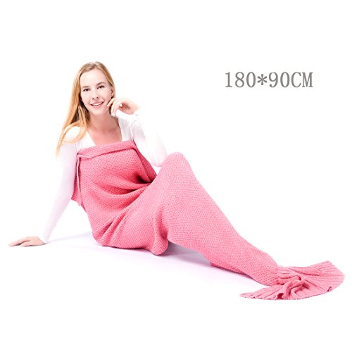 マーメイドテールブランケット、Kysonマーメイドかぎ針編み子供大人用ブランケット、すべてのシーズンSleepingバッグハロウィーン感謝祭クリスマスギフト Adult ピンク MRYP00A-Pink