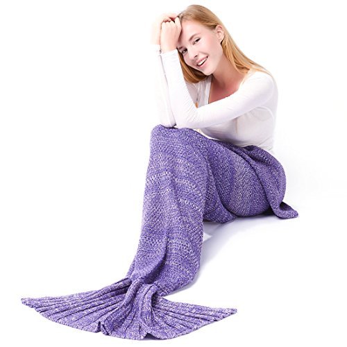 マーメイドテールブランケット、Kysonマーメイドかぎ針編み子供大人用ブランケット、すべてのシーズンSleepingバッグハロウィーン感謝祭クリスマスギフト Adult パープル MRYP00A-Purple