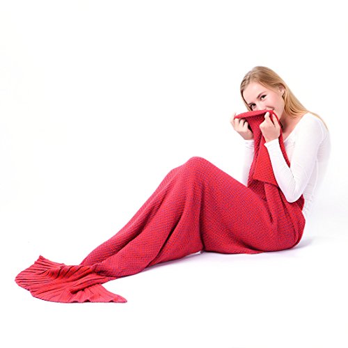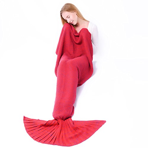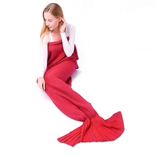 マーメイドテールブランケット、Kysonマーメイドかぎ針編み子供大人用ブランケット、すべてのシーズンSleepingバッグハロウィーン感謝祭クリスマスギフト Adult レッド MRYP00A-Red