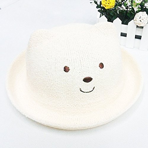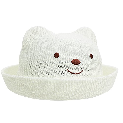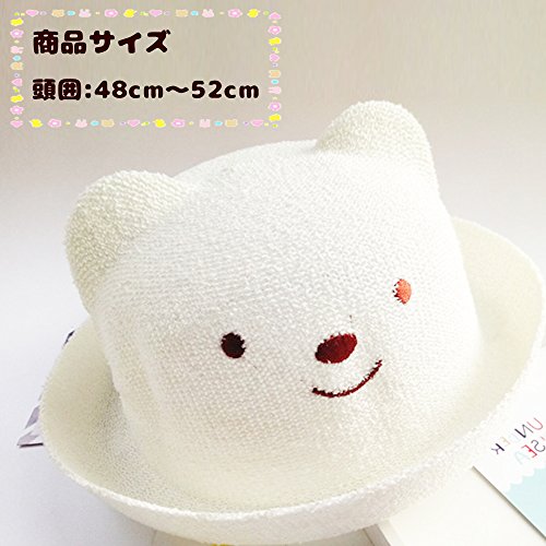 Haima くま 耳付き 麦わら帽子 日差し UV 柔らか 折り畳み 旅行 プール (ホワイト)