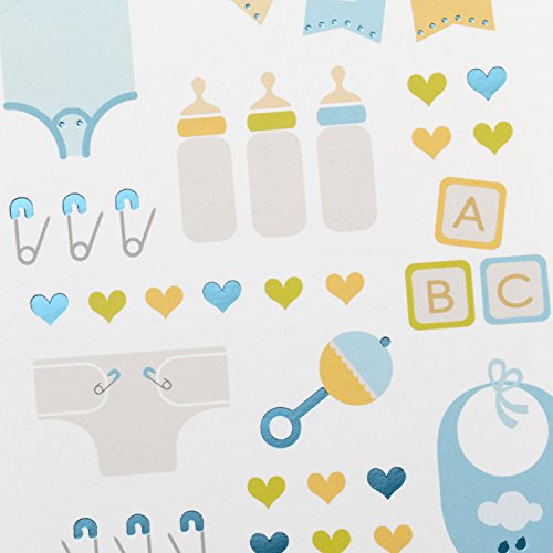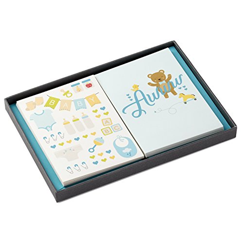 - セットは20の空白のnotecards – 2青のエンベロープ、画像のプロップ本リバーシブル設計の場合は、20カードに格納されています。カード機能Babyアイコン、ブルーホイルのレタリング。ベビーシャワーのパーティーを明らかにまたは性別しましょう。