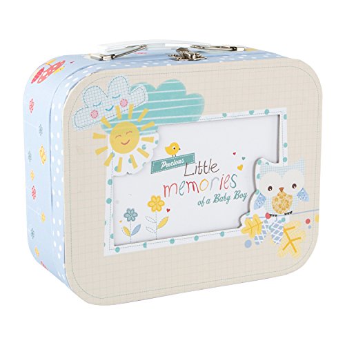 Perfect for storing babies prized keepsakes photo's cards and letters this little memories of a baby boy box. The box has a clear front window to insert a photo or scan The box measures 20cm wide x 8cm deep