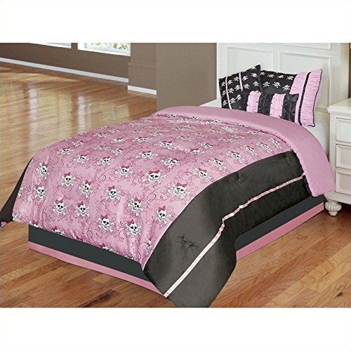 Hallmart Kids 43645 6-Piece Pirate Jane Comforter Set, Full, Pink/Black [並行輸入品]