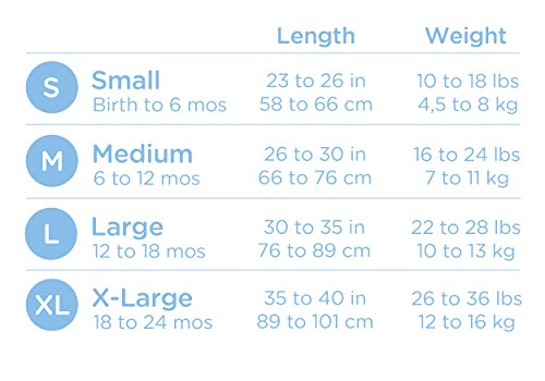 23 to 26 (58 to 66 cm), 10 to 18lbs (4.5 to 8 kg);100% Cotton;Birth to 6 Months;Arm and neck openings sized for a safer fit;Inverted zipper for easy diaper changes
