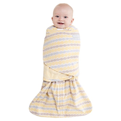Color:Yellow Waves ツ?|ツ? Size:Newborn The HALO SleepSack Swaddle replaces loose blankets in the crib that can cover your baby・?・s face and interfere with breathing. In addition to helping your baby sleep safer, it helps him sleep better, too. Its adjustable swaddle wrap immobilizes your baby's arms to prevent the 'Moro' or startle reflex. And, it is the only 3-way adjustable swaddle that adjusts to your baby・?・s sleep style. Swaddle arms in, hands-to-face, one or both arms out to ensure baby・?・s best sleep and an easy and gentle transition to the SleepSack wearable blanket when it is time to stop swaddling. Used in hospitals nationwide, the Halo SleepSack Swaddle is the #1 choice of hospitals and is recognized as 'Hip Healthy' by the International Hip Dysplasia Institute. Its strong adjustable fasteners ensure a perfect fit and resist breakouts for more secure swaddling. Plus, its innovative zipper, unzips from the bottom allowing your baby to stay swaddled for easy diaper changes. HALO also proudly supports non-profit organizations like First Candle/SIDS Alliance. Use over regular sleepwear to take the place of loose blankets. Discontinue swaddling when the baby shows signs of rolling over or breaking out of the swaddle wrap. 100% polyester micro fleece. TOG: 3.0 Size preemie fits birth ・?・ 5lbs, size newborn fits 6-12 lbs, size small fits 13-18 lbs.