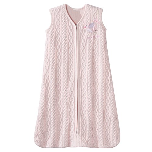 - Halo Sleepsack Cable Knit Sweater Wearable Blanket, Pink Bird, Small