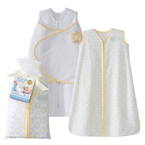- HALO SleepSack 100% Cotton Swaddle and Wearable Blanket Gift Set, White/Gray/Yellow Diamond, 2 Piece