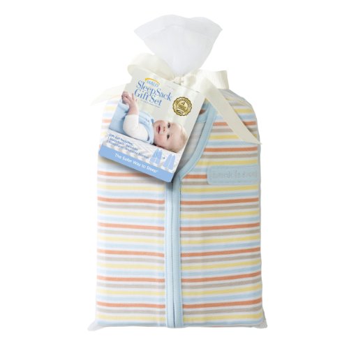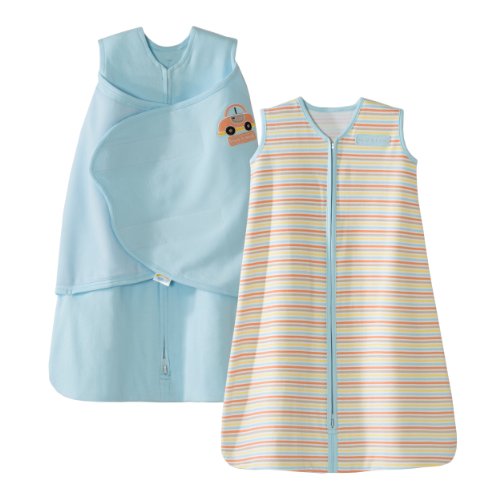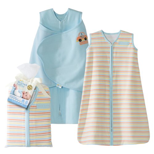 HALO SleepSack 100% Cotton Swaddle and Wearable Blanket Gift Set, Blue/Car Multi Stripe, 2 Piece by Halo