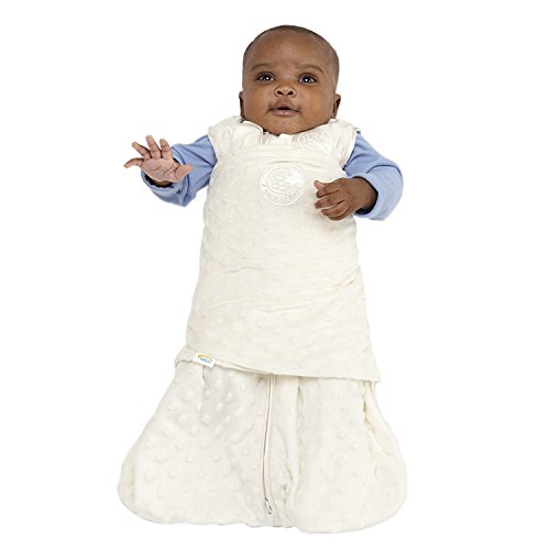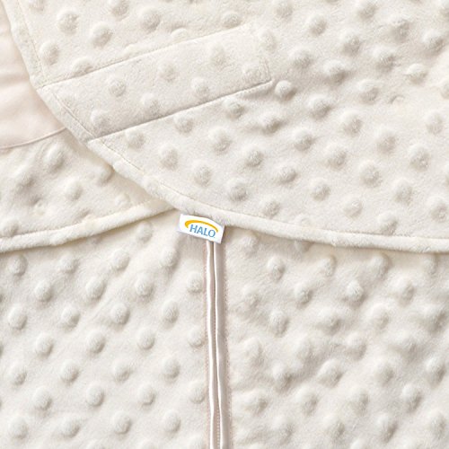 Color:Cream ツ?|ツ? Size:Newborn The HALO SleepSack Swaddle replaces loose blankets in the crib that can cover your baby・?・s face and interfere with breathing. In addition to helping your baby sleep safer, it helps him sleep better, too. Its adjustable swaddle wrap immobilizes your baby's arms to prevent the 'Moro' or startle reflex. And, it is the only 3-way adjustable swaddle that adjusts to your baby・?・s sleep style. Swaddle arms in, hands-to-face, one or both arms out to ensure baby・?・s best sleep and an easy and gentle transition to the SleepSack wearable blanket when it is time to stop swaddling. Used in hospitals nationwide, the HALO SleepSack Swaddle is the #1 choice of hospitals and is recognized as 'Hip Healthy' by the International Hip Dysplasia Institute. Its strong adjustable fasteners ensure a perfect fit and resist breakouts for more secure swaddling. Plus, its innovative zipper, unzips from the bottom allowing your baby to stay swaddled for easy diaper changes. HALO also proudly supports non-profit organizations like First Candle/SIDS Alliance. Use over regular sleepwear to take the place of loose blankets. Discontinue swaddling when the baby shows signs of rolling over or breaking out of the swaddle wrap. 100% polyester plush dot velboa. TOG: 3.0. Size newborn fits 6-12 lbs.