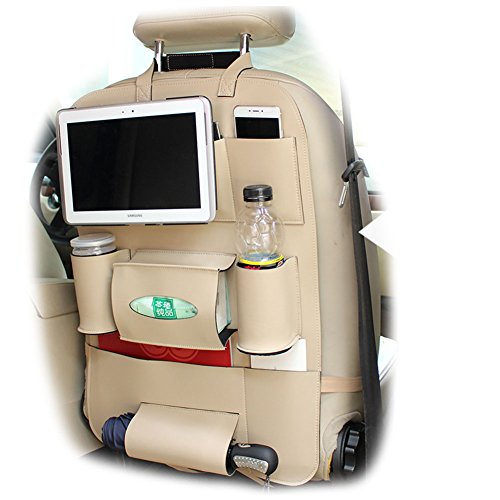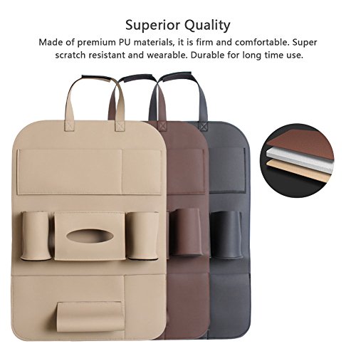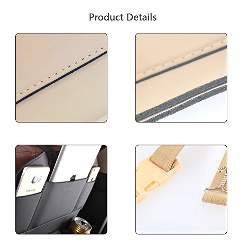 HaloVa Car Seat Backオーガナイザー、品質PU Backseat Organizer含む、マルチポケット付き耐スクラッチ性ウェアラブル旅行用ストレージバッグwith 7コンパートメント、赤ちゃん旅行アクセサリーなど ベージュ