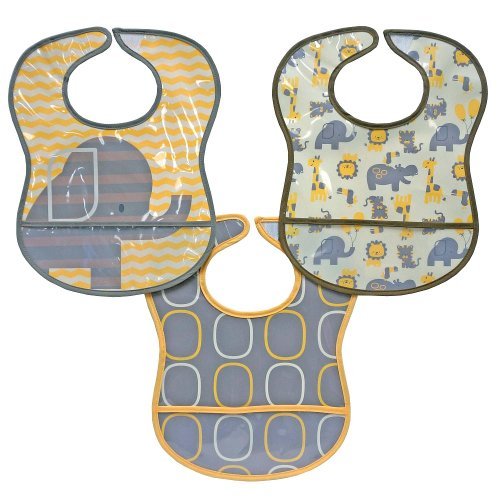 Hamco Elephant PEVA Bibs, Yellow - 3 pack;one size;Gray and yellow