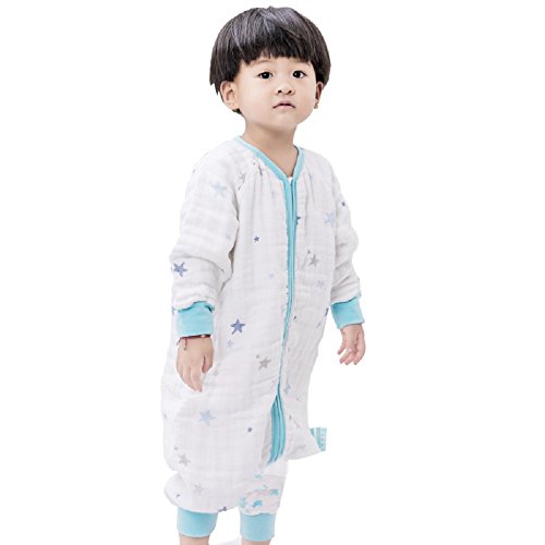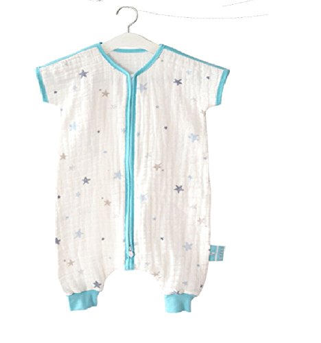 HanSi 星柄 4重ガーゼスリーパー 夏用 ベビー寝袋 半袖ベビー スリーパー 星空 夏用 赤ちゃん ベビーケット 寝冷え防止(0-3歳) ブルー