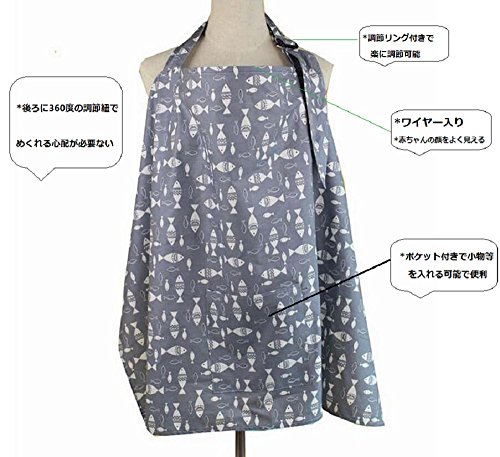 HanSi 授乳ケープ ナーシングカバー ワイヤ入り 赤ちゃんの顔をよくに見える 綿100% 収納袋付き グレー