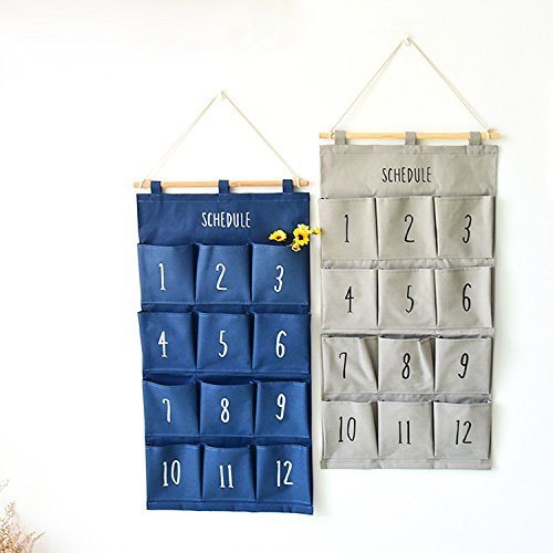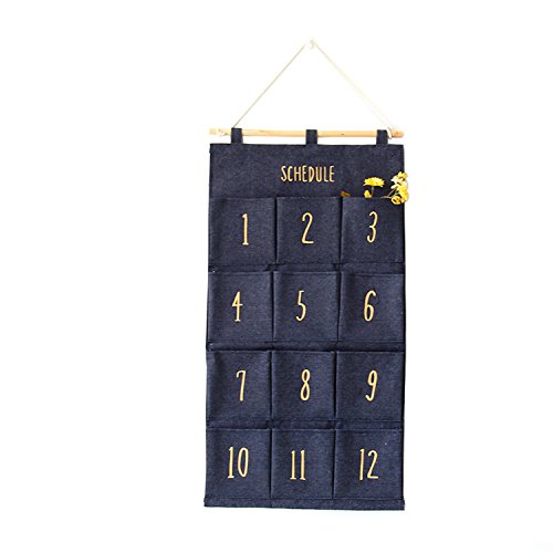 hangnuo 12-pocket月スケジュールハンギングクローゼットオーガナイザーをドアのオーガナイザーホルダーストレージバッグ ブルー SNGD007-05