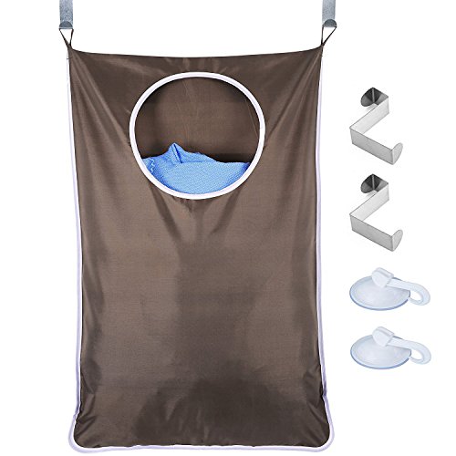 hangnuoドア吊り下げ洗濯籠バッグ – をドアの服オーガナイザーwithステンレススチールとSuckerフック ブラウン Hanging Hamper-Coffee