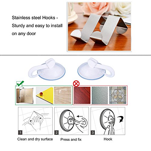 - 2種類のハンガー – 付属のハンガー2、任意の場所でもインストールが容易、高すぎないステンレススチールハンガーフィットドア、サッカーフックフィットでなめらかで、クリーンは高いドアと壁
