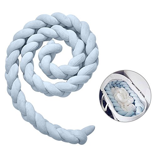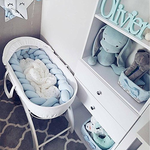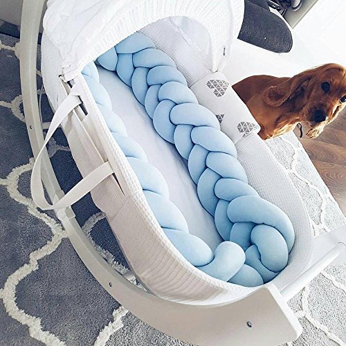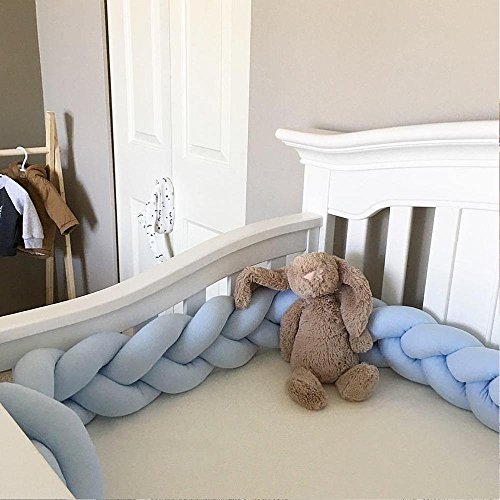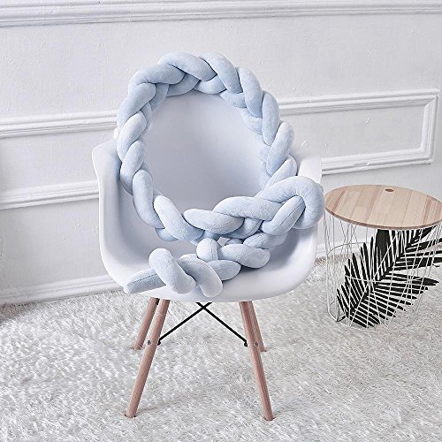 Hangnuo ベビーベッドガード フェンス ベッドバンパー 抱き枕 ノットクッション サイドガード 結び目 ロング 北欧 癒しアイテム 出産お祝い プレゼント (1.5M, ブルー)