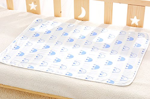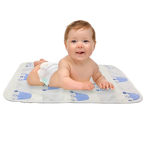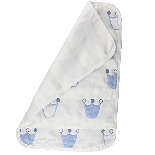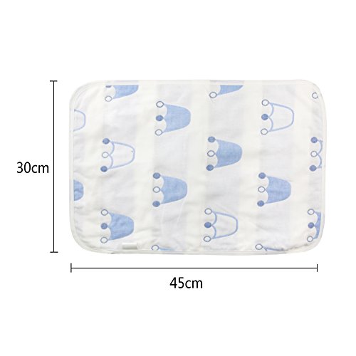Hangnuo おむつ替えシート おむつ替えマット 3重ガーゼ防水シート 両面使える吸水 通気抗菌 良い肌さわり 出産お祝い (30*45CM, ブルー王冠(一枚))